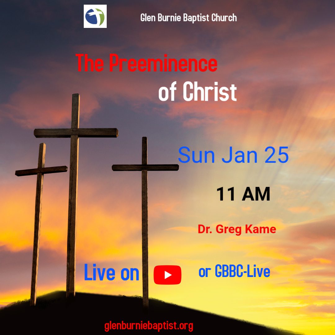 Jan 25 Worship Service & Live Streaming 11:00 am - 12:15 pm Glen Burnie Baptist Church 7524 Old Stage Road, Glen Burnie Event Details Get Directions
