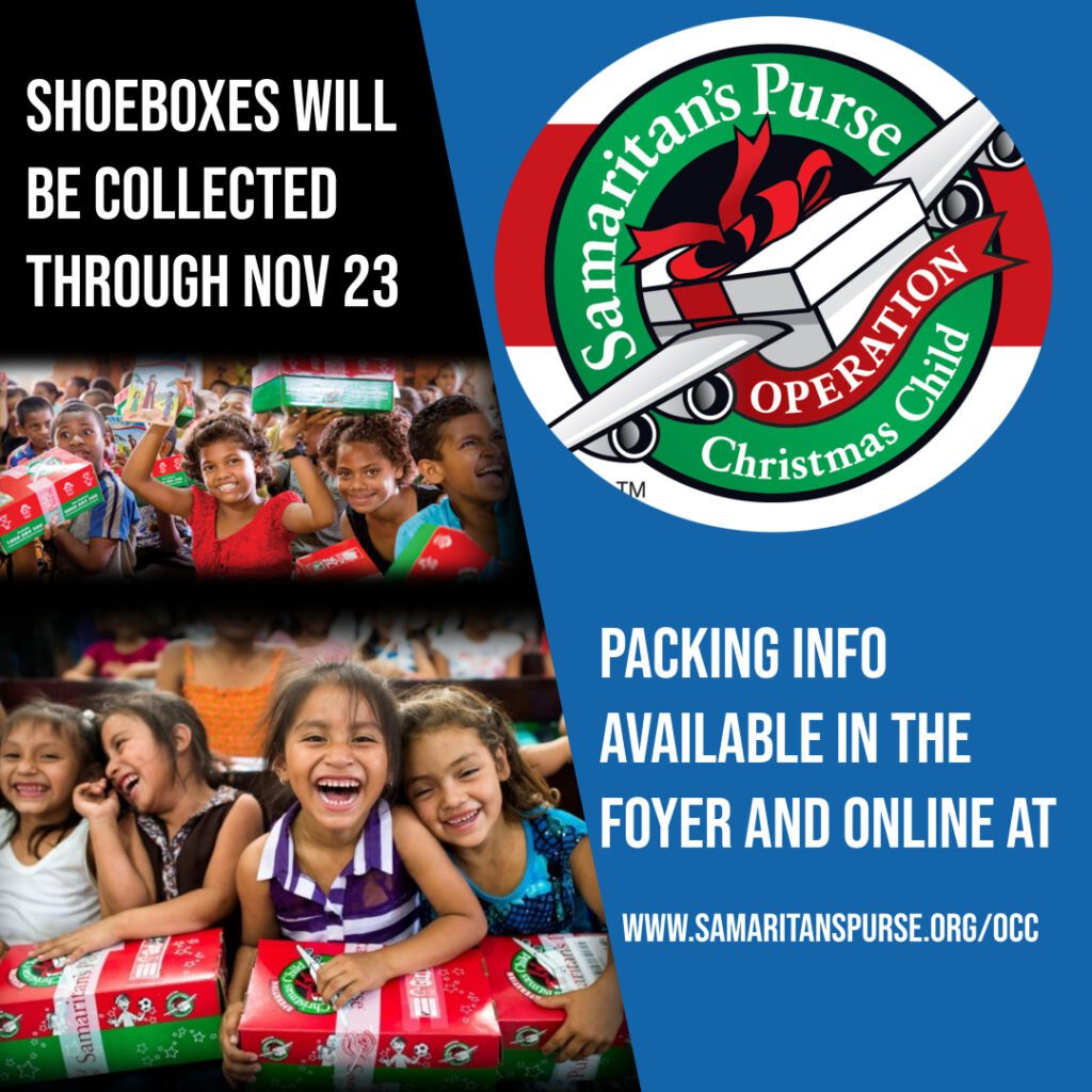 Samaritan’s Purse, Operation Christmas Child Ministry is underway, and GBBC is collecting