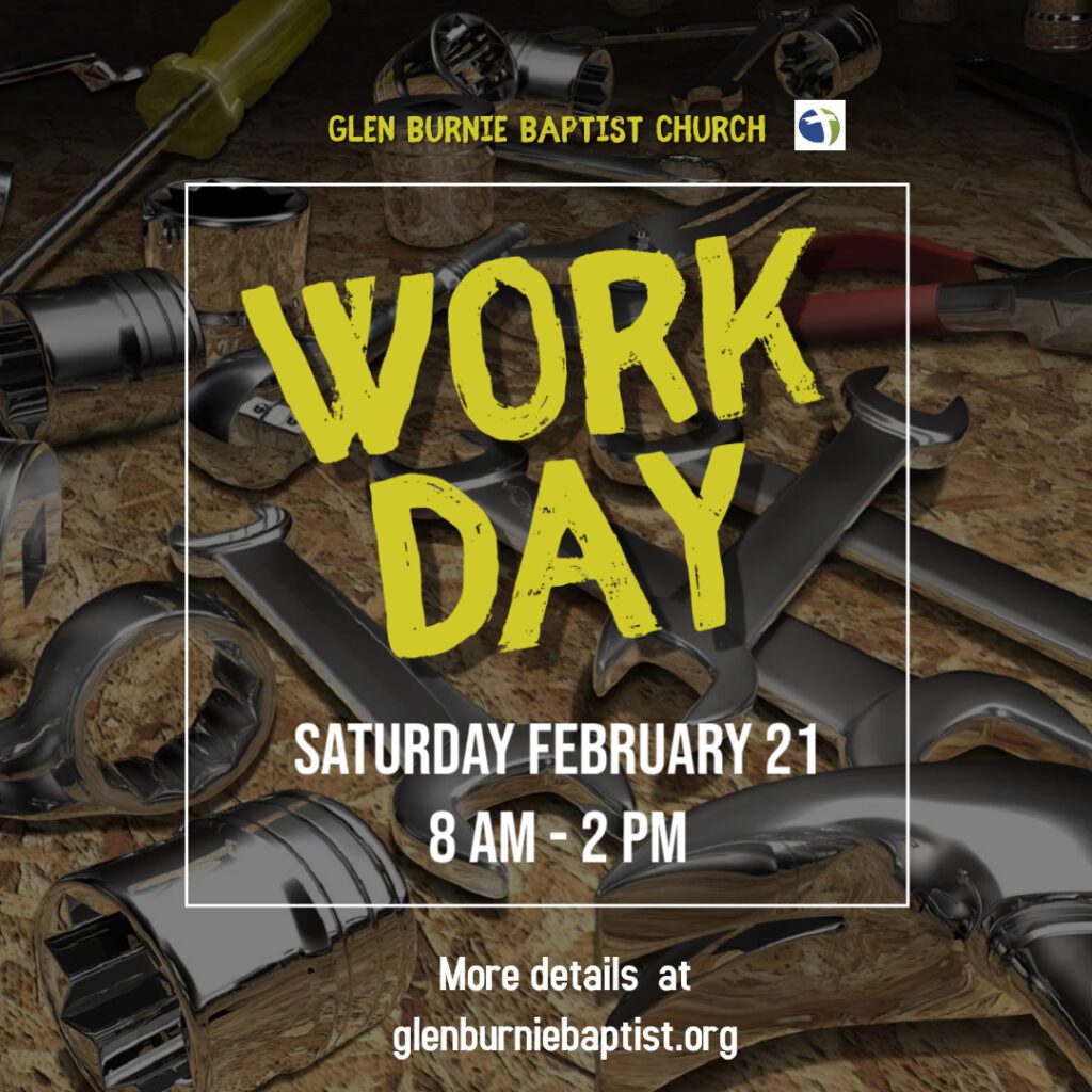 Our next church workday is Saturday February 21. Circle this date on your calendar!